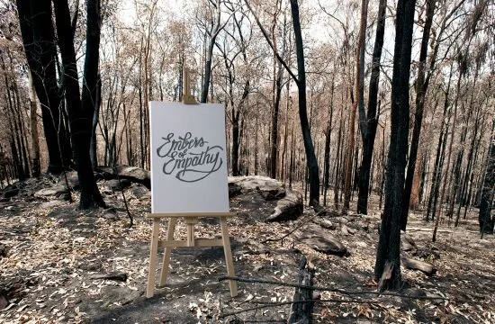 From ash to art: in 2013, fierce bushfires destroyed many homes in Australia’s Blue Mountains. Australia’s Red Cross played a very important role in relief efforts. Working in the team at GPY&R, and visiting the decimated homes in the Blue Mountains myself, we helped the Red Cross raise awareness and funds by curating an auction of work by prominent Australian artists using charred fragments (embers) from houses and land destroyed in the bushfires; turning symbols of tragedy into instruments of hope.